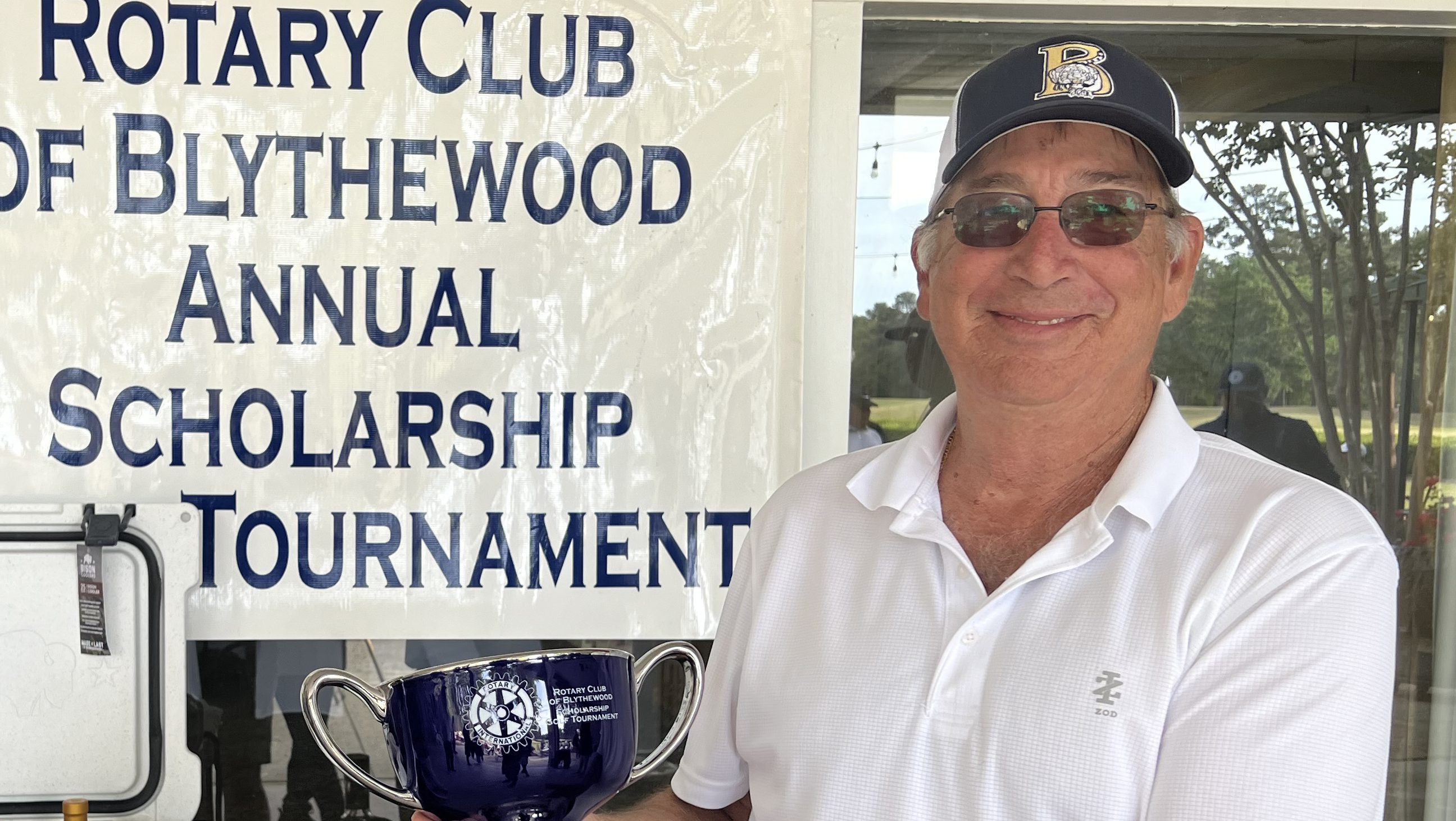 BLYTHEWOOD – Keith Spitler, representing his winning team, shows off the championship trophy for the Annual Blythewood Rotary Scholarship Golf Tournament. The tournament, sponsored by...