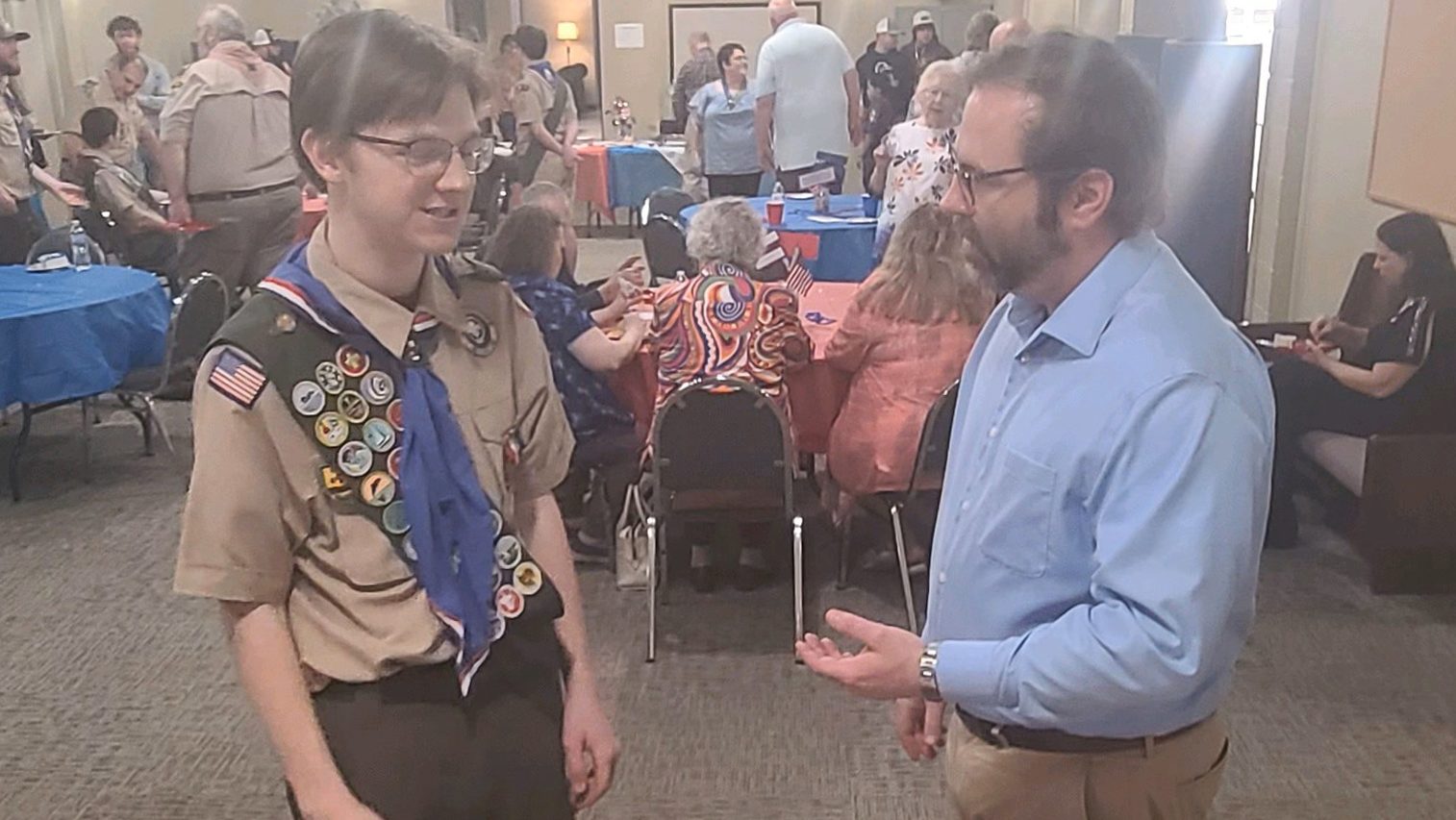BLYTHEWOOD – Councilman Donald Brock congratulates Ryan Leadbitter of Ashley Oaks as he was awarded his Eagle Scout rank on March 25, 2023 at Trinity...