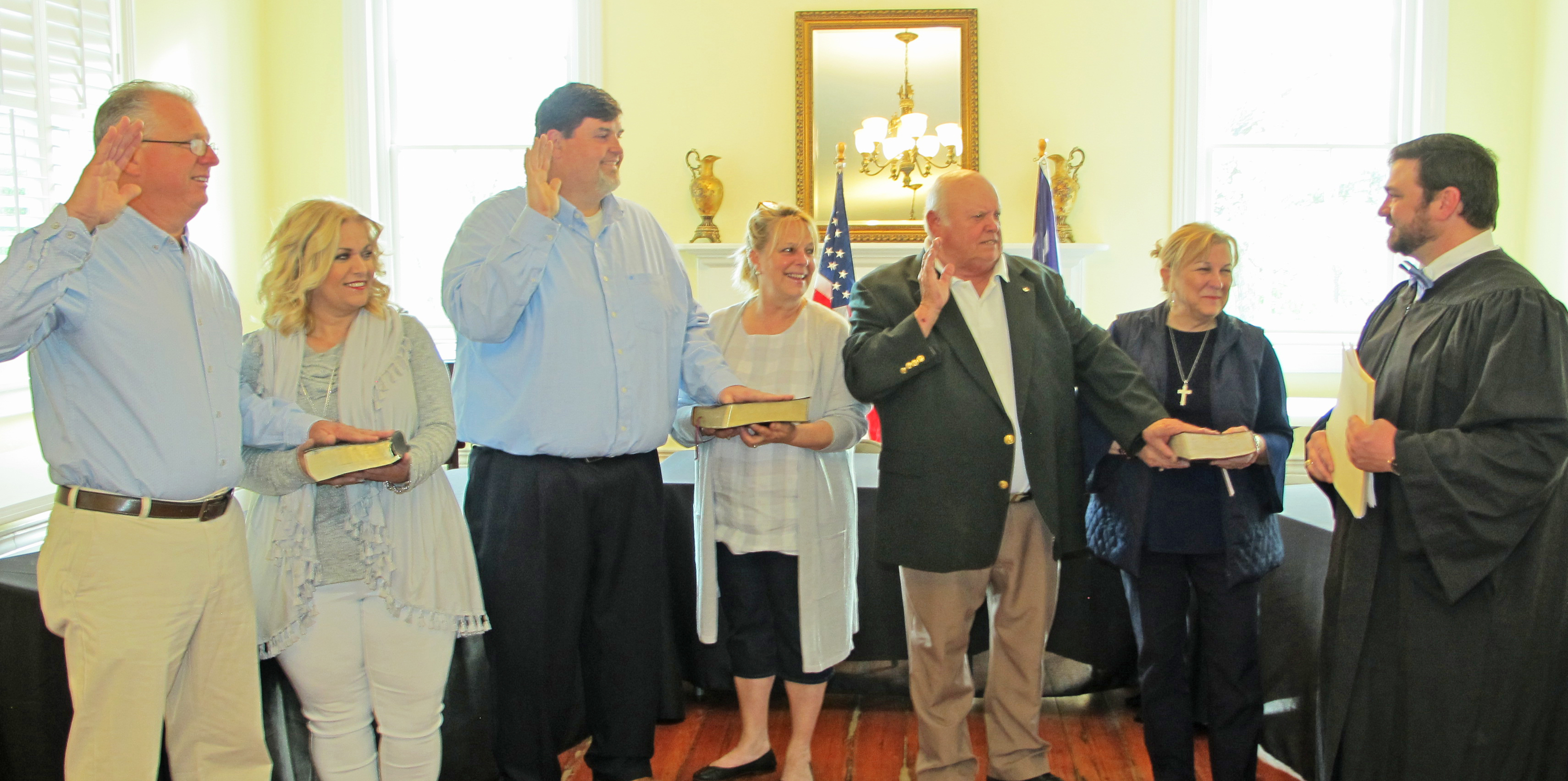 RIDGEWAY – Ridgeway’s newly elected mayor and town council members were sworn into office Friday evening at the Century House by Ridgeway Municipal Judge Adrian...