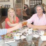 County Councilmen Billy Smith and Dan Ruff and their fiancees toast their engagements while having lunch in the Cornwallis Tea Room in downtown Winnsboro Sunday. Smith (Ieft) and Rachel Williamson haven’t yet set a date. Ruff and Brenda Clark will be married in September.