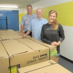 Richard Winn Academy Head of School Brandy Mullennax accepts a donation of two 5-ton split system air conditioning replacement units from Jimmy Ray Douglas, center. Johnny Porter arranged and paid for installation of the units. RWA is sprucing up for the 2016-2017 school year.