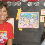 Alexia Hernandez (right), a fourth-grade student at the Fairfield Magnet School, and her art teacher, Kimi Daly, pose with Hernandez’s winning work in the National SHADE Foundation Poster contest. Hernandez’s portrayal of the harmful effects of too much sun earned her a trip to Washington, D.C.