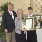 Senator Creighton Coleman and Representative MaryGail Douglas present a proclamation honoring Sarah McMaster, center, for her 39 years of service as Director of the Fairfield County Public Library. During the Sunday afternoon retirement party, many town and government officials and members of the community thanked McMaster and wished her well.