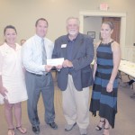 Mayor J. Michael Ross presented a check during the Monday evening Council meeting for $1,000 to Blythewood’s Jeep Rogers YMCA for its annual fundraising campaign. Accepting the donation are representatives of the YMCA, from left, Tiffani Moore, Brad Lewis (manager of the Blythewood office of Mid Carolina Credit Union) and Katie Litton.