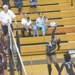 Fairfield Central’s Ebony Hemphill sends one back to the Lady Capitals in last week’s match against Columbia. The Lady Griffins prevailed 3-1 (25-18, 20-25, 25-20, 25-12).