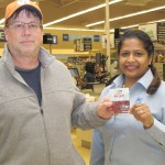 As the winner of The Independent Voice’s Holiday Subscription contest, subscriber Les Wilkes of Blythewood receives a $50 gift card from the Blythewood Food Lion Customer Service Manager Mary Fullard.
