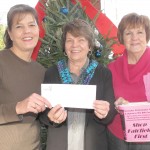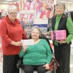 Susan Yenner, right, Administrative Assistant of the Fairfield Chamber of Commerce, drew this third lucky winner’s name for the Shop Fairfield First promotion. Sandra Brown, of Lugoff, formerly of Ridgeway, accepts the $50 cash prize from Mary McMahan, manager of Goody’s where Brown shopped to receive the winning ticket.