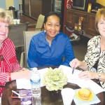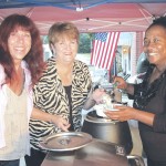 Vesha Sanders, right, owner of the soon-to-open Old Town Hall Restaurant in downtown Ridgeway, serves shrimp and grits, a taste of what’s to come, to shoppers Elfie Heckler, left, owner of Club 145 in Winnsboro, and Terry Vickers, president of the Fairfield Chamber of Commerce, during Ridgeway’s First Friday celebration last weekend.