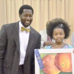 Takiya Willingham (right) was recognized by the Fairfield County School Board and their superintendent, J.R. Green (left), for winning first place in the Acrylic Painting Art Competition at the S.C. Junior Beta Club Convention held at Myrtle Beach Jan. 24-25.