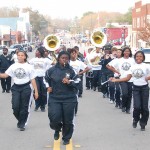 The Fairfield Central High School marching band and baton twirlers entertain the parade audience.