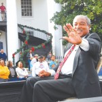 Newly re-elected Sheriff Herman Young waves to the crowd.