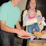 Winnsboro dentist, Dr. Reid Warren (right) holds daughter Avery, 4-1/2 mos., while her husband, Todd, fills their plates.