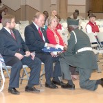 S.C. State Guard Command Sergeant Major John Lovett Jr. presents the flag to Lt. Col. John C. Chapman (USAF-Ret.) at the conclusion of the Nov. 9 Veterans Day ceremony at the M.H. Boykin Community Center in Winnsboro.