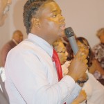 David Williams sings with the Hopewell Baptist Church choir last week at the Gethsemane Baptist Church revival, which concluded Aug. 31.