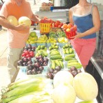 Clifford Hall, left, and Jennie Howard arrange produce for sale at the McLeod Farmer’s Market on S. Congress Street in downtown Winnsboro on July 4. Hall said the market has set up shop on Saturdays in downtown Winnsboro for over 20 years.