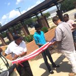 Fairfield Middle School students are instructed on the proper way to fold the American flag by safety officer Mr. Paul Praileau.