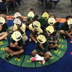 After reading David Gets in Trouble, Mrs. Hunter’s Child Development class at Geiger Elementary School discussed classroom rules and created David masks.