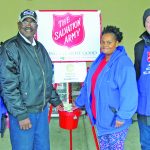 BLYTHEWOOD – Blythewood Rotarians Al Montgomery, left, and Mark Cruise, right, ring their Salvation Army bells as Melvin Jones of Ridgeway and Bernice Hook of Blythewood drop money in the pot.