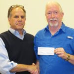 BLYTHEWOOD – Representing the Doko Park Foundation, Paul Moscoti presented a $30,000 check to Councilman Eddie Baughman, also a member of the Park Foundation, to be used for the Park. The presentation was made at the April 22 Town Council meeting.