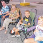 Downtown Winnsboro’s Third Thursday last week drew hundreds who enjoyed a screening of “E.T.,” hopscotch, food and fun. Pictured: Thurmond and Linda Pullen and their grandchildren Dillon, 11, and Sara, 8, enjoyed popcorn on the back row at the movie