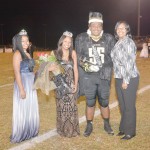 Nytorria Jeter (left), the 2013 Homecoming Queen, and FCHS principal Tracie Swilley (right) crown seniors Jourdan Brooks and Larry “Rudy” Garlington Fairfield Central High School’s 2014 Homecoming Queen and King during Friday night’s halftime festivities.