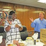 About fifty fellow employees and friends said farewell with refreshments and gifts to Assistant County Administrator Laura Johnson, who is retiring, and former County Administrator Jason Taylor, who will take over as Winnsboro Town Manager next month.