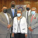 County Council Chair Moses Bell and new council member Shirley Greene chat with Helen McFadden who facilitated an orientation workshop for parliamentary procedure and Robert’s Rules of Order for council members on Jan. 23.