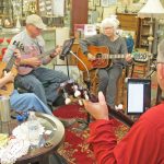 WINNSBORO – The Fresh Picked band entertained at Oldies and Goodies in Winnsboro during First Friday, Dec. 3. Strumming are: Jeff Mattox, Lynn Douglas, Natalie Pope and Heyward Mattox.