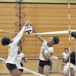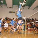 WINNSBORO (Sept. 20, 2016) — Moesha Boyd pounds one back against the Lady Yellow Jackets Monday evening at Fairfield Central High School. The Lady Griffins fell in straight sets to the 5A power, 25-17, 25-11 and 25-5.