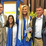WINNSBORO – Ryan Sharpe, left, Heath Caldwell and Cheryl Caldwell presented 2019 Jenni Sharpe Memorial Scholarships to Hannah Gibbons, left center, and Caleigh Caldwell at Richard Winn’s graduation on May 16. Sharpe will also present the scholarship to Fairfield Central seniors at Class Night on June 5.