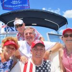 LAKE WATEREE – Lake Wateree residents Tibi and Sandra Czentye, left and front center, took their boat out for the Trump boat parade on Lake Wateree on July 3. Joining them were the Tega Cay Mayor David L. O’Neal, top, and friends Vic and Patti Dabney. More than 500 boats participated.