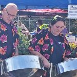 Two members of the Pantasia Steel Drum Band performed at a community event on Sunday hosted by Mt. Pleasant and St. John UMC churches. The event included a bake sale, plant swap and yard sale.