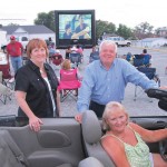Terry Vickers, president of the Fairfield County Chamber of Commerce; Winnsboro Mayor Dr. Roger Gaddy and Connie Shackelford, Downtown Development Coordinator enjoy a night at the movies during Winnsboro’s Third Thursday. For more photos from the event, see page 8.